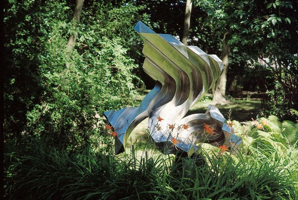 hügelig abfallenden gelände, sind die großen skulpturen aufgestellt.